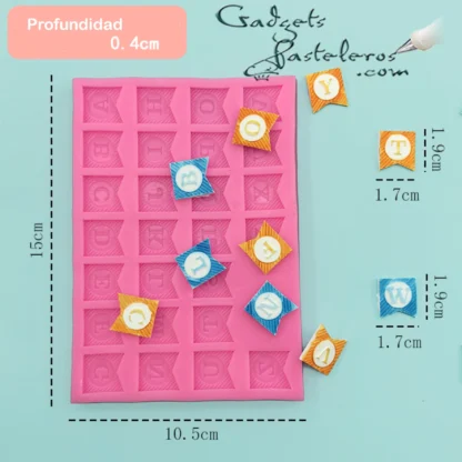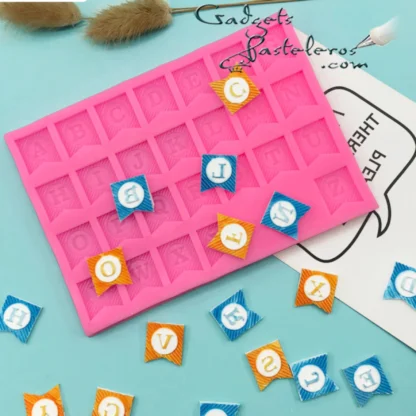 Tags: Alfabeto banderines silicona, letras fondant, chocomensajes, letras chocolate, chocooreos, fresas, isomalt, mazapan, alfabeto silicona fondant, cupcakes letras