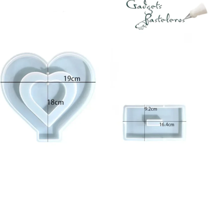 Medidas del Molde: Corazon: 18 cm de alto x 18 cm de ancho y base con 16.3 cm