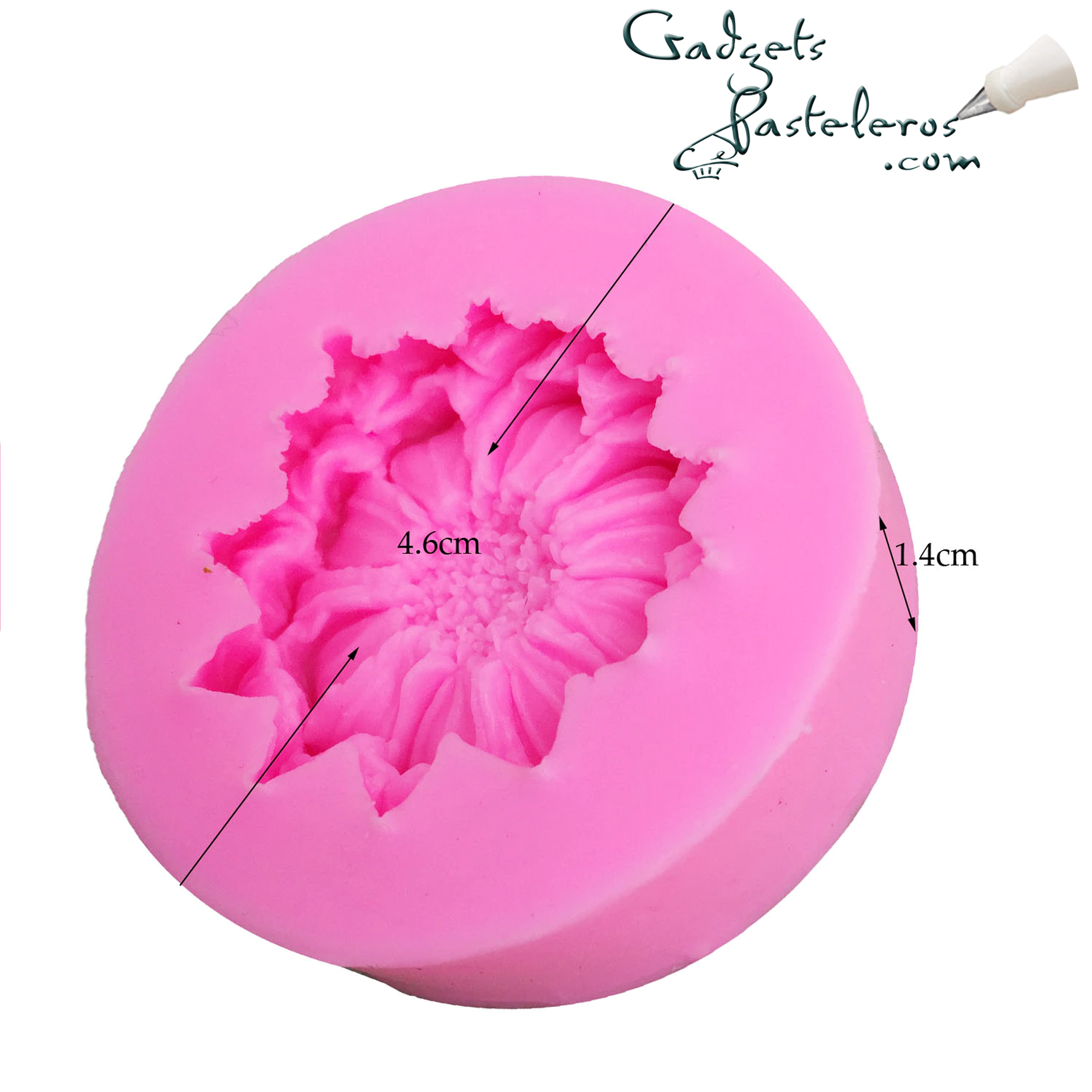 Medidas del molde: 4.7  cm de diámetro, . La flor  queda de 3.1 cm de diámetro