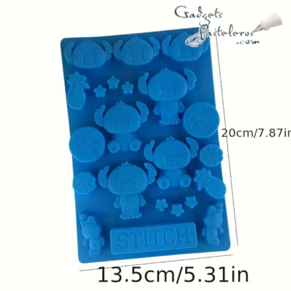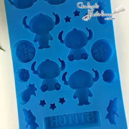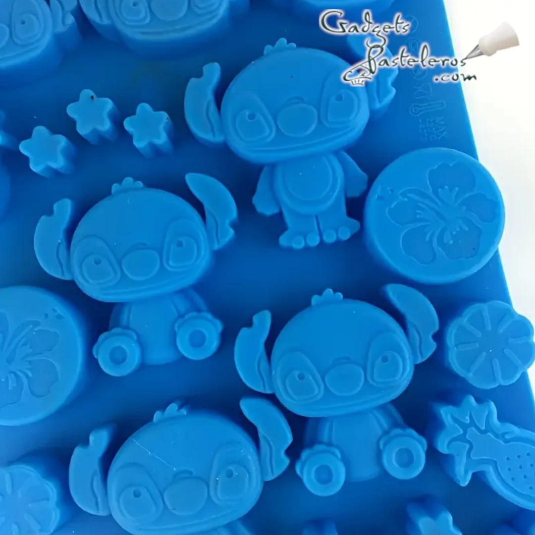 Tags: moldes silicona diseños temática stitch, decoraciones stitch en chocolate, decorar mesas dulces stitch