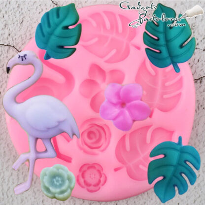 Medidas flamingo terminado: 3.7 cm de alto x 2.3 cm de ancho,Hojas tropicales 2 cm de alto x 1.6 cm Aprox