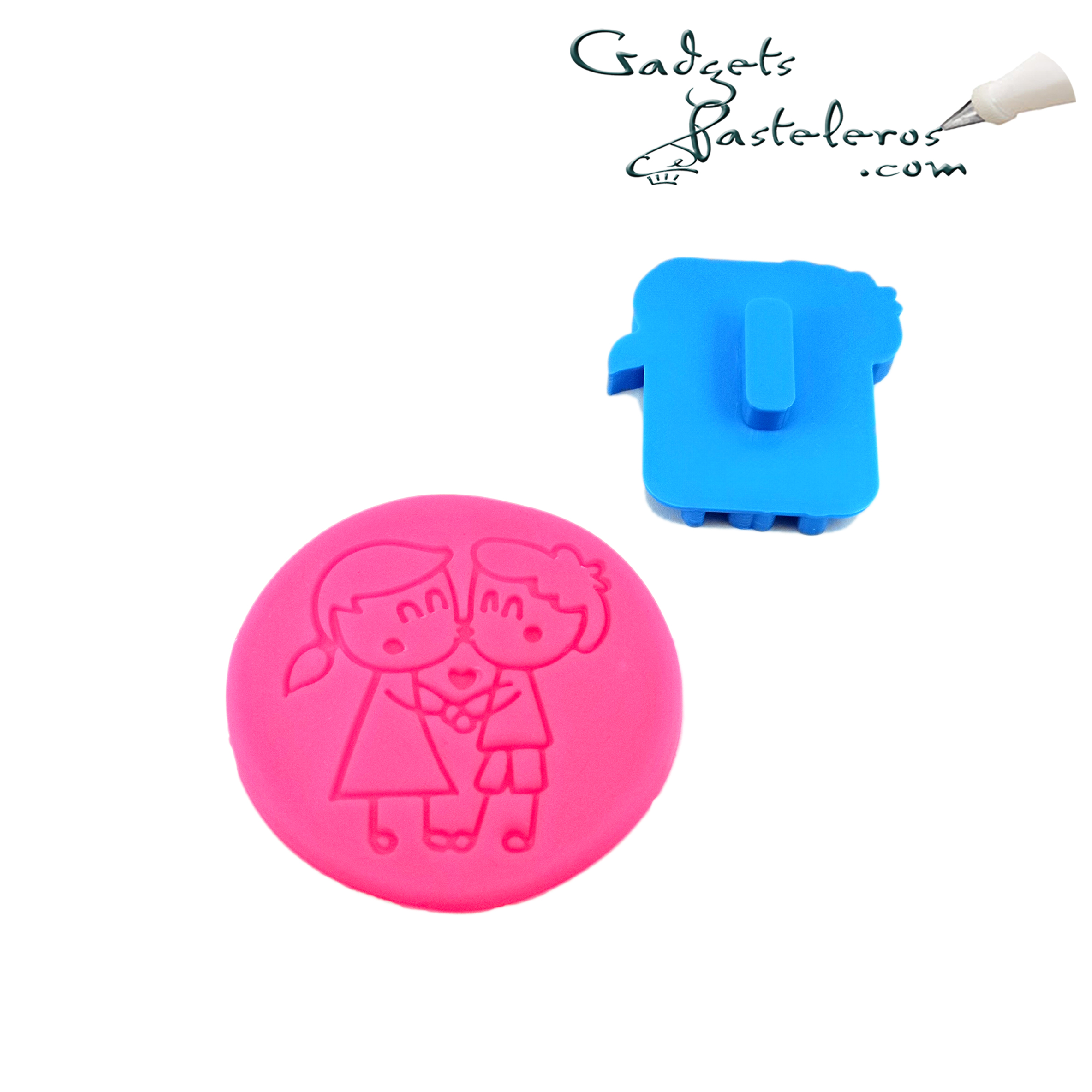 Usos: Sello texturizador de diseño pareja para masas flexibles y pastas de azúcar en general